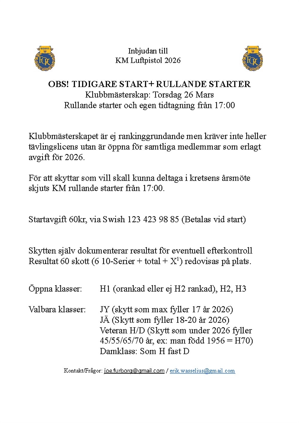Nu är det dags för KM Luftpistol 2026!